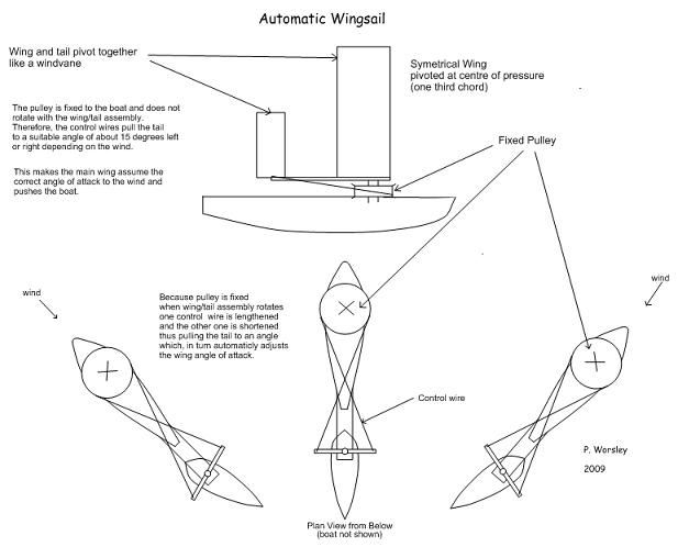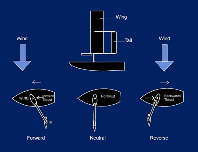 tail) which aligns the wing at all times to the wind. In other words the wind does the work more accurately than manual sheeting can do on traditional sailing rigs.